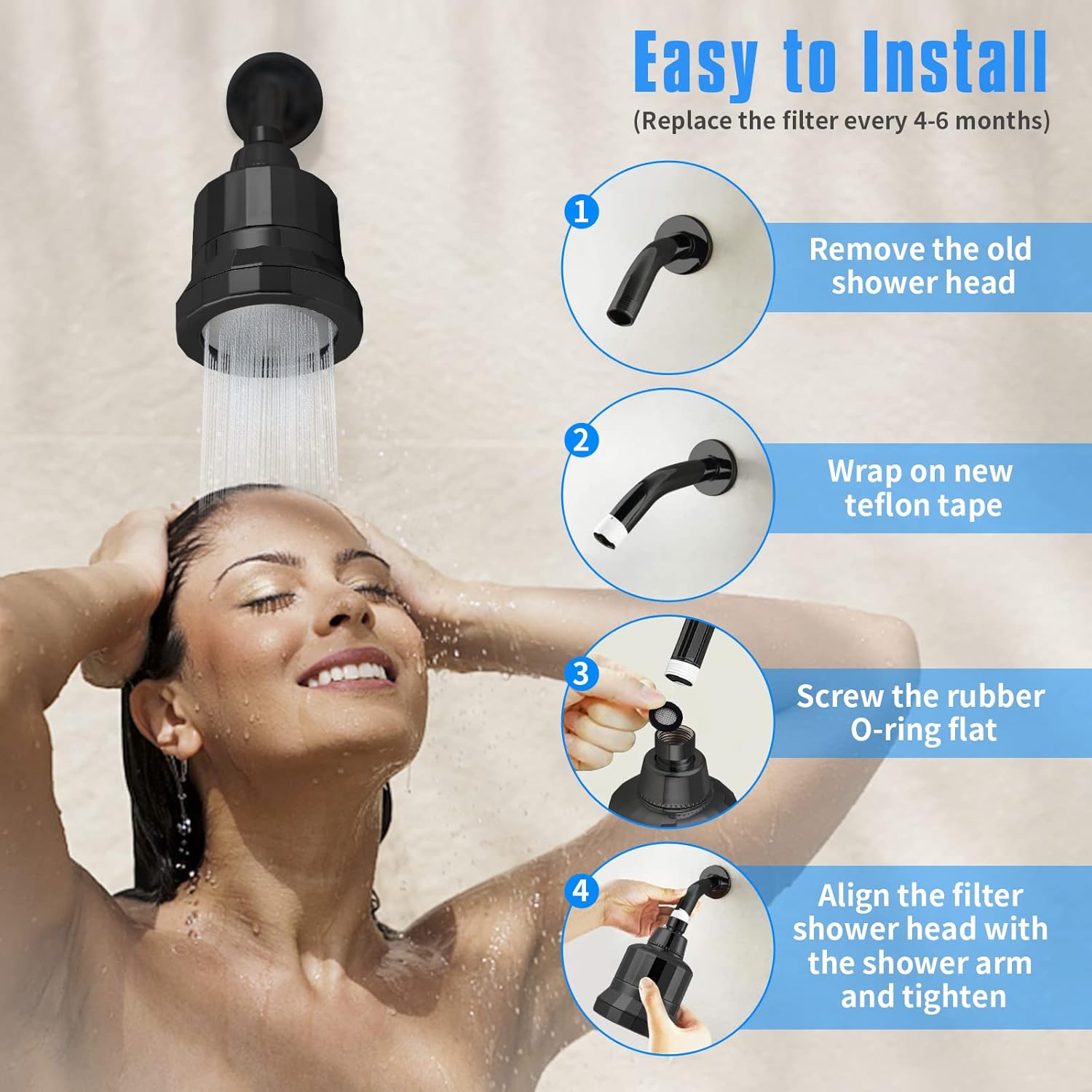 Installer dette enkelt selv i enhver standard dusj! Ingen verktøy kreves, bare en håndstrammet kobling og litt rørleggertape som er inkludert. Ingen lekkasjer eller sprekker.